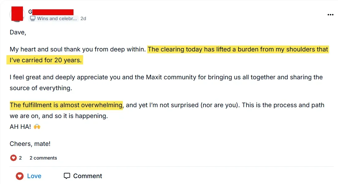 "Maxit woke me up. I’ve done all the courses, read all the books — nothing shifted me like this."